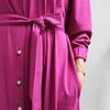 Šaty Karina S – dlhé košeľové šaty z talianskeho úpletu punto s opaskom a vreckami. Vhodné až do veľkosti 54+ a dostupné aj šitie na mieru. Navrhnuté a vyrobené na Slovensku. Univerzálny kúsok, ktorý môžete nosiť aj ako ľahký prehoz – ideálne do práce, na voľný čas aj na spoločenské príležitosti.