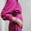 Jedinečný dizajn umožňuje nosenie s opaskom alebo bez – podľa vašej nálady či príležitosti. Vďaka voľnému strihu a skrytým praktickým vreckám sa model ľahko kombinuje s teniskami, sandálmi aj elegantnejšou obuvou. Funguje výborne aj ako prehoz cez outift.