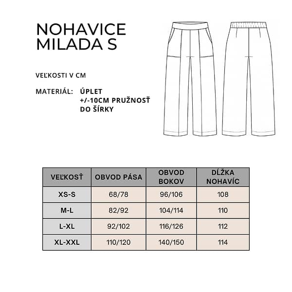 Nohavice Milada S sú elegantné a pohodlné dámske nohavice, ktoré sa stanú základným kúskom vášho každodenného šatníka. Ich dizajn spája minimalistický vzhľad s premysleným strihom, vďaka čomu sú ideálne na každú príležitosť – do práce, na voľné dni aj spoločenské stretnutia.